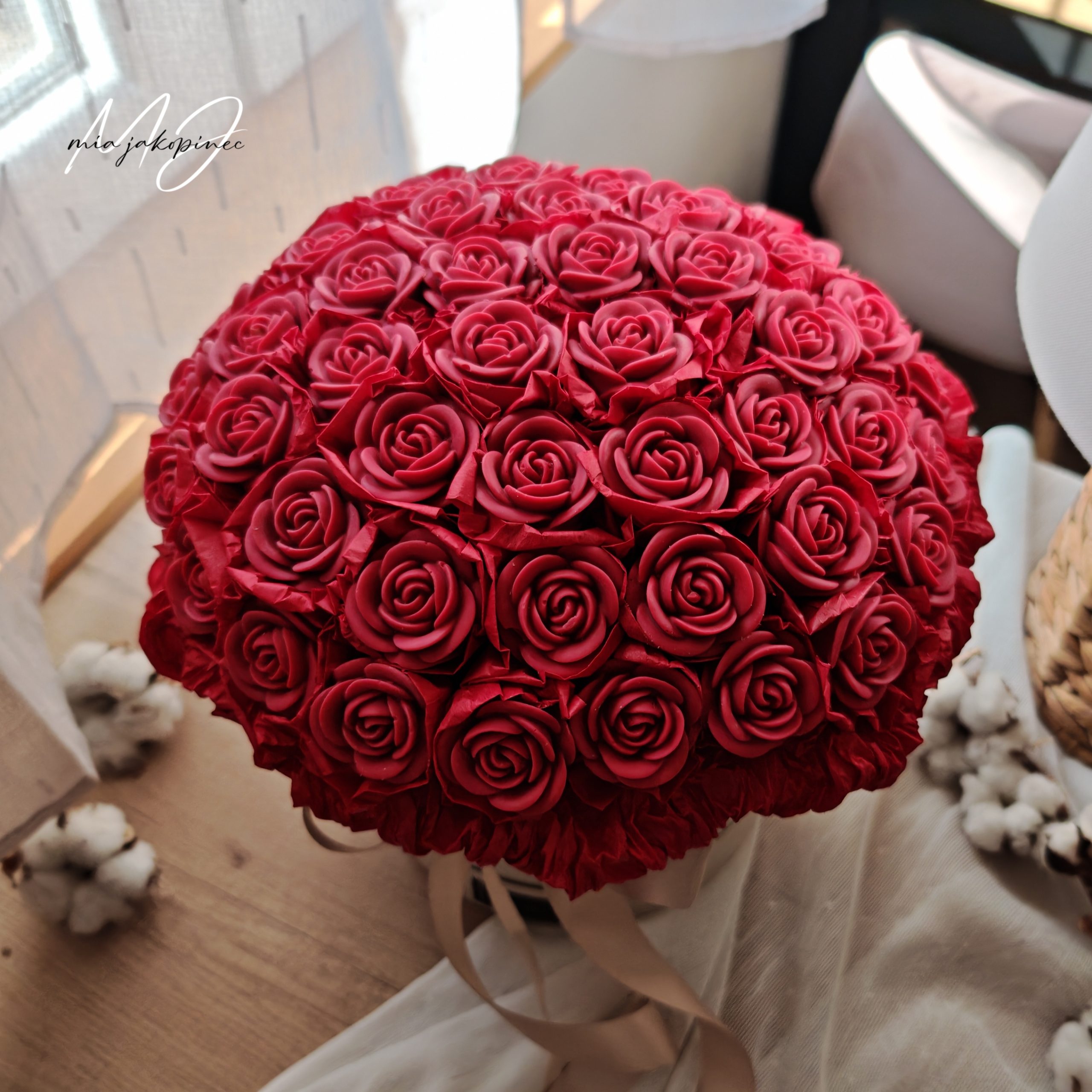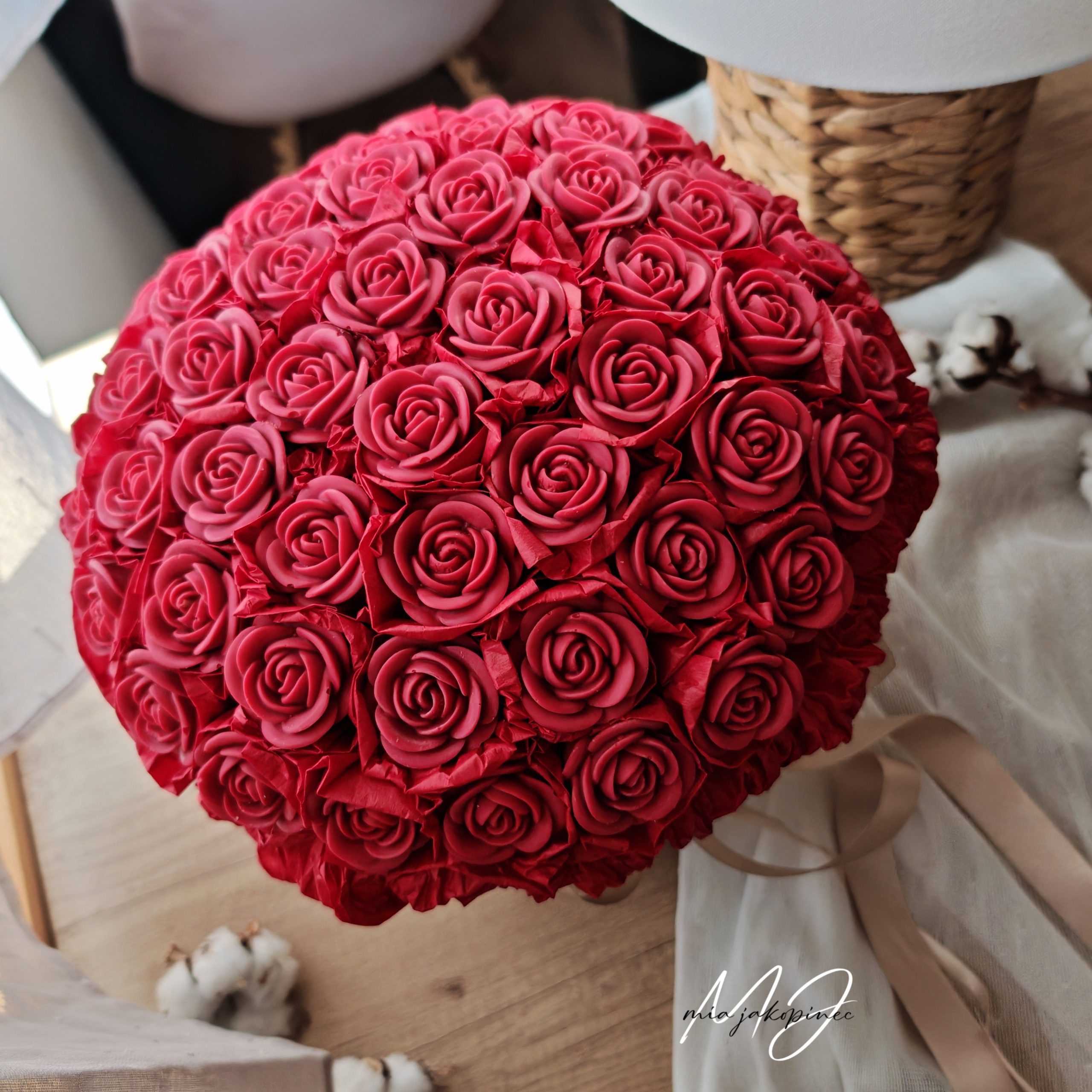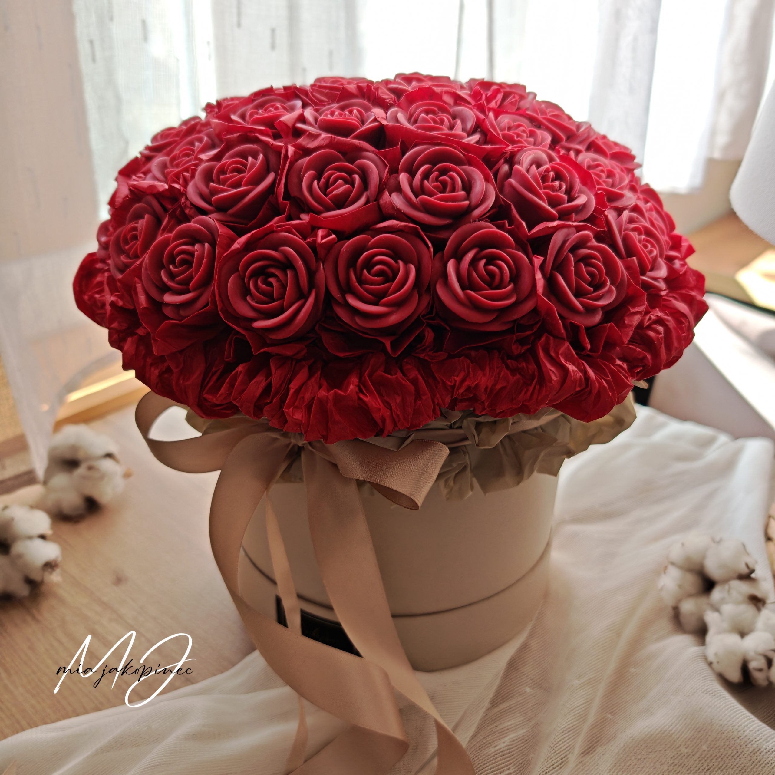 Veliki box s 50 ruža od mirisnog sojinog voska. Boja kutije moze varirati ovisno o dostupnosti.