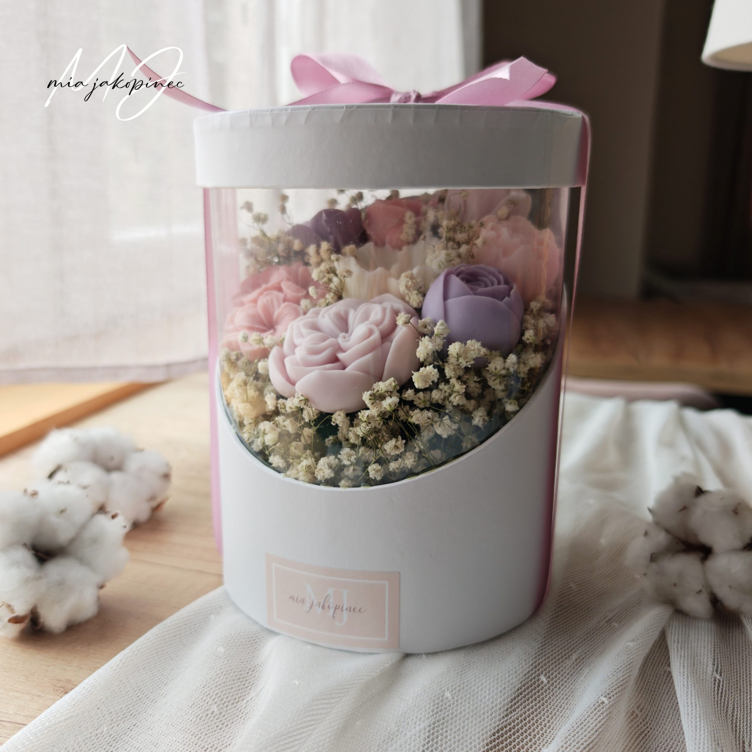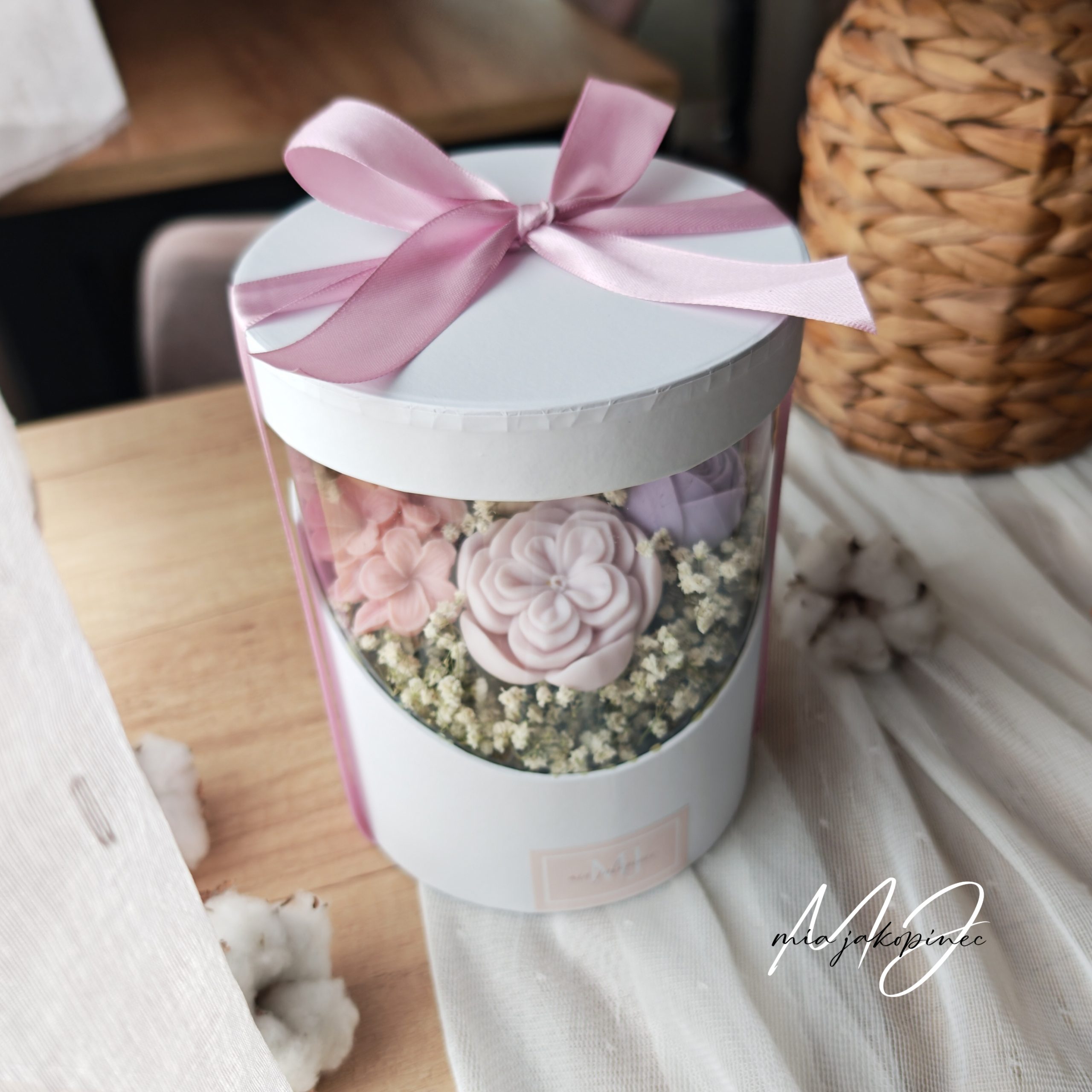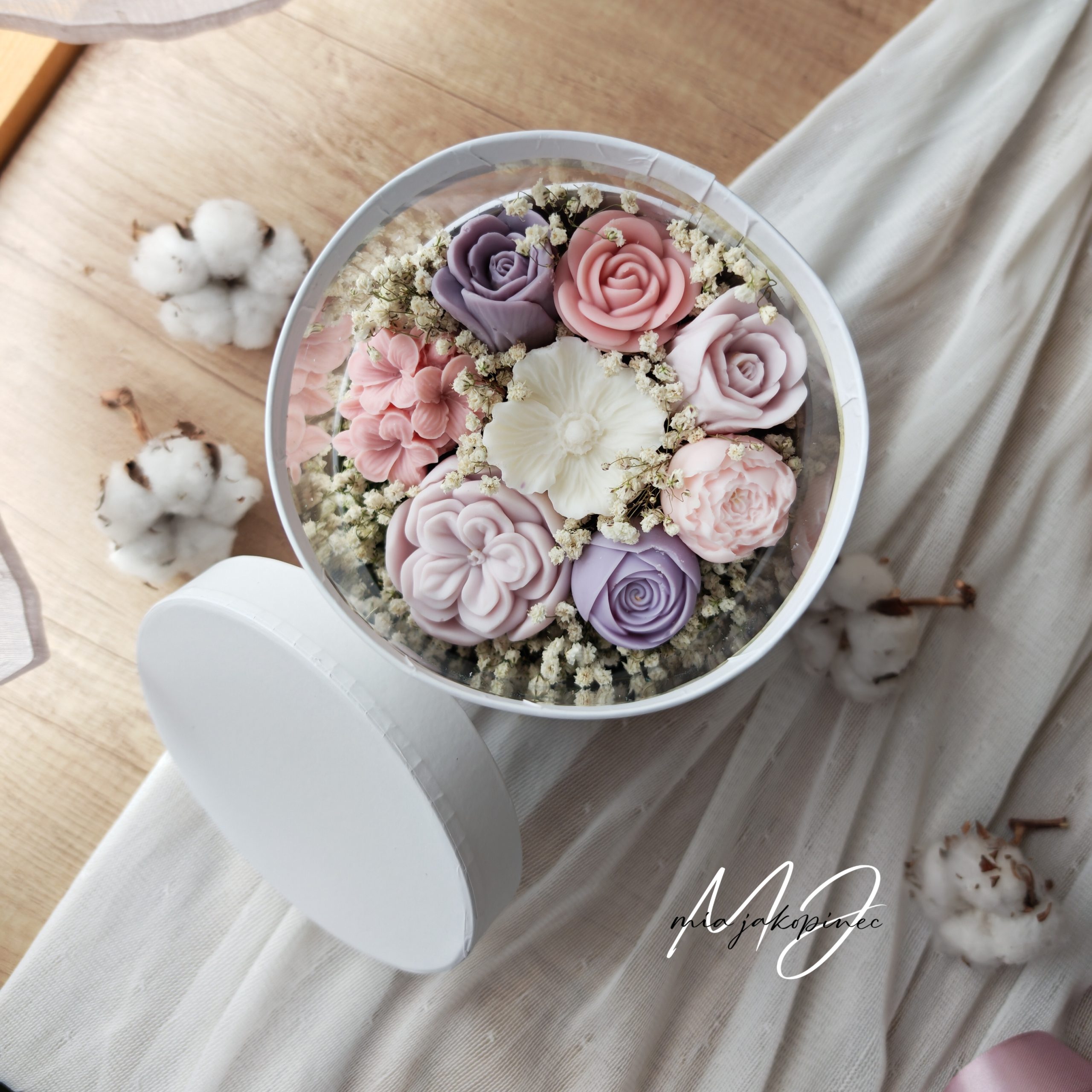 Mirisni cvijece od sojinog voska i suho cvijece.